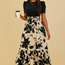 Name : Stylish Black & Beige Floral Maxi Dress for Women | Elegant Fit & Flare Western Dress | Partywear Long Dress with Puff Sleeves